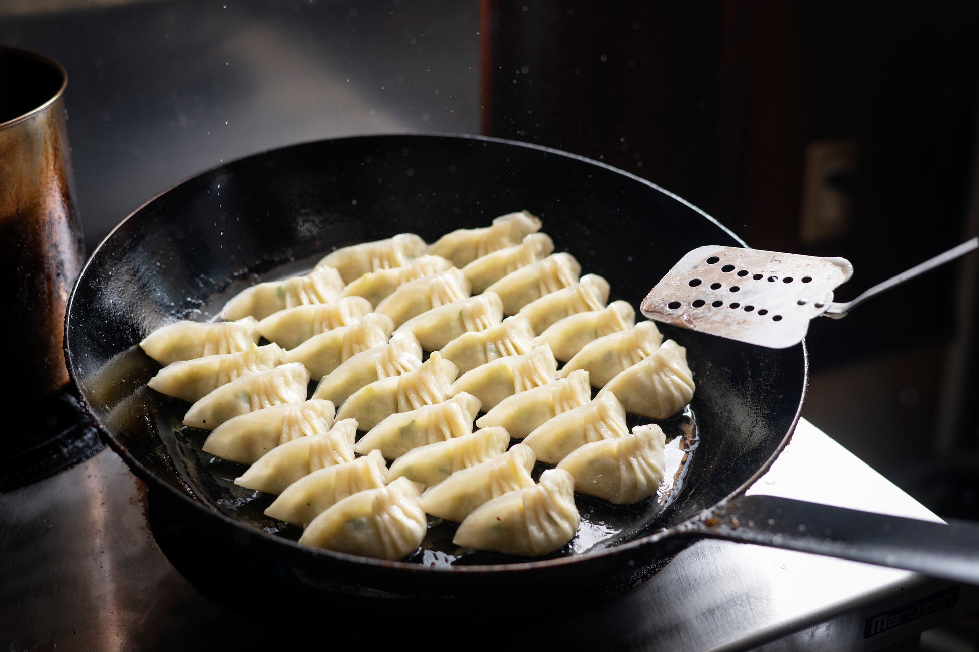皮はモチモチで中身はキャベツやタマネギ等がたっぷり入っている野菜の甘味を感じる餃子です。